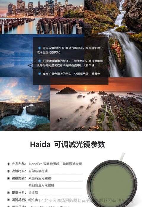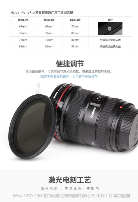 Haida海大NanoPro镀膜可调ND12-400减光镜52/55/58/62/67/72/77/82mm中灰密度镜适佳能尼康索尼单反摄影滤镜