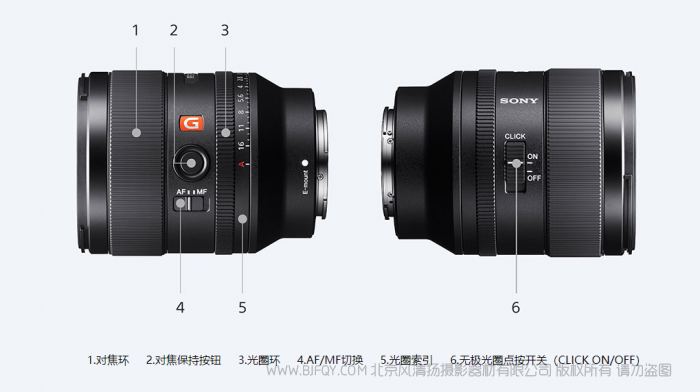镜头还具备可切换无极光圈的光圈点按开关(CLICK ON/OFF),可以更好地控制镜身的光圈环进行视频拍摄。