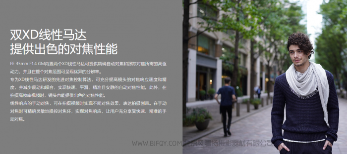 FE 35mm F1.4 GM内置两个XD线性马达可提供精确自动对焦和跟踪对焦所需的高驱动力,并且在整个对焦范围可呈现优异的分辨率。