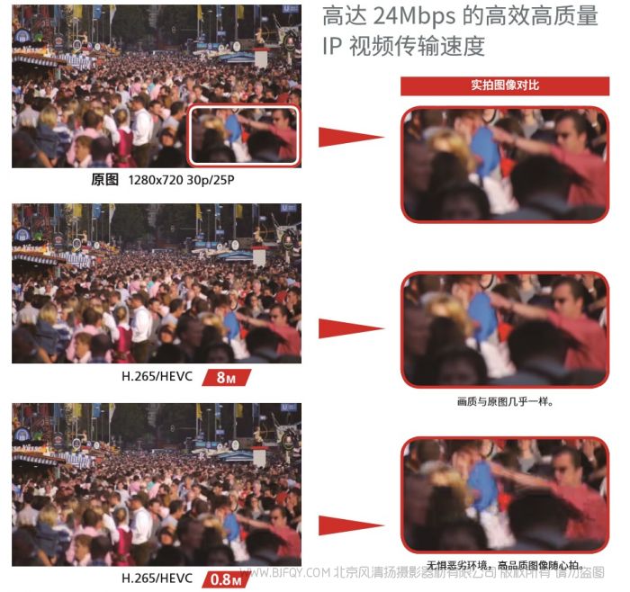 | 1.在 50%的码率下,H.265 标准压缩可以取得与 H.264 标准相似或更好的图像质量。