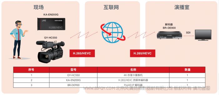 主要特点 可连接型号 GY-HC550/GY-HC500 系列 GY-HC900 系列(需要进行固件更新) 支持协议 MPEG2-TS/UDP Zixi(取决于摄像机设置) SRT(取决于摄像机设置) 屏幕高宽比 16:9 H.265 标准流媒体的 HDR HLG 和 J-Log