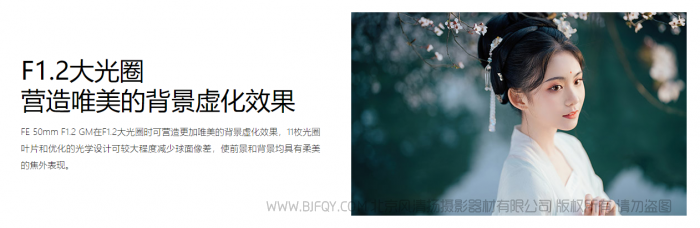 FE 50mm F1.2 GM在F1.2大光圈时可营造更加唯美的背景虚化效果,11枚光圈叶片和优化的光学设计可较大程度减少球面像差,使前景和背景均具有柔美的焦外表现。