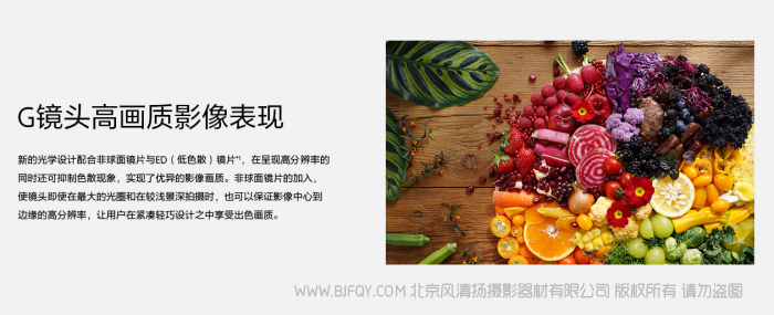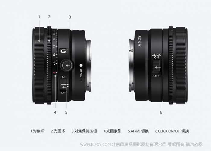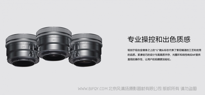 铭刻于铝合金镜身之上的“G”镜头标志代表了索尼精湛的工艺和优秀的品质。紧凑轻巧的设计与高画质并存,光圈环和线性响应MF提供直观的操作性,让用户的拍摄更加轻松