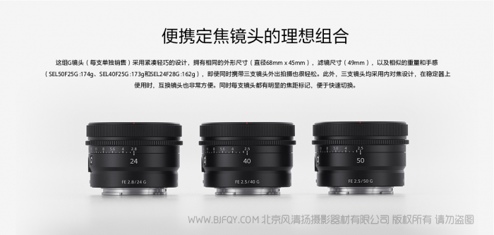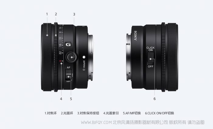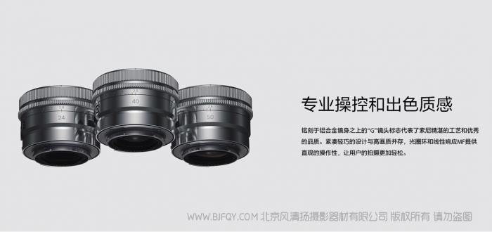 铭刻于铝合金镜身之上的“G”镜头标志代表了索尼精湛的工艺和优秀的品质。紧凑轻巧的设计与高画质并存,光圈环和线性响应MF提供直观的操作性,让用户的拍摄更加轻松。