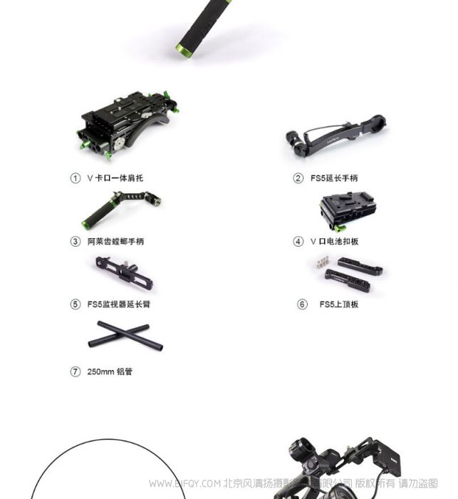7.一体肩托(VMS-01)8.V口电池扣板(VBP-01)9.FS5电源线(DC-50-10)10.250MM铝管(AR-250)