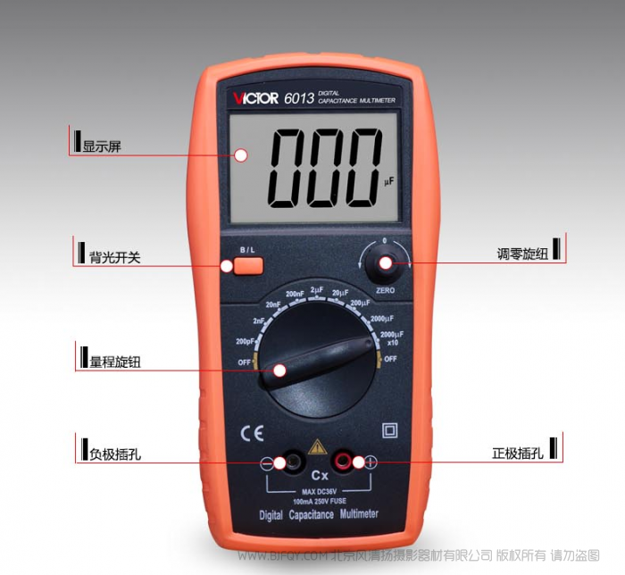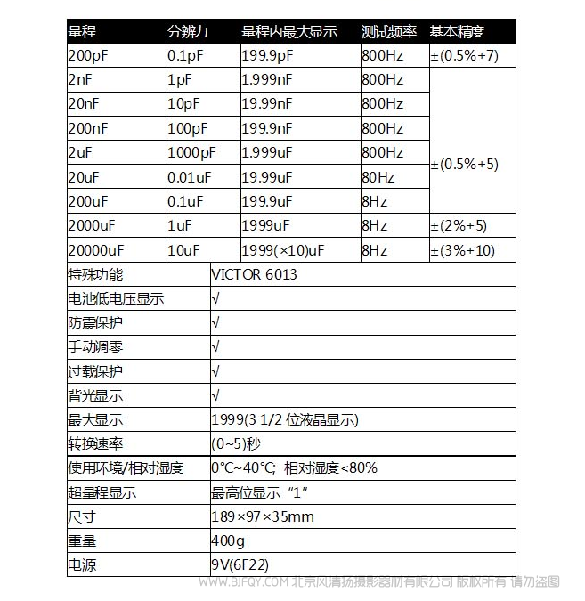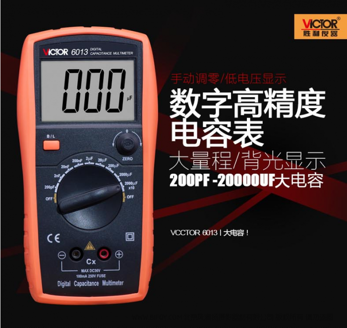 胜利仪器 VICTOR 6013 数字电容表 手动量程 数字高精度 大量程 背光显示