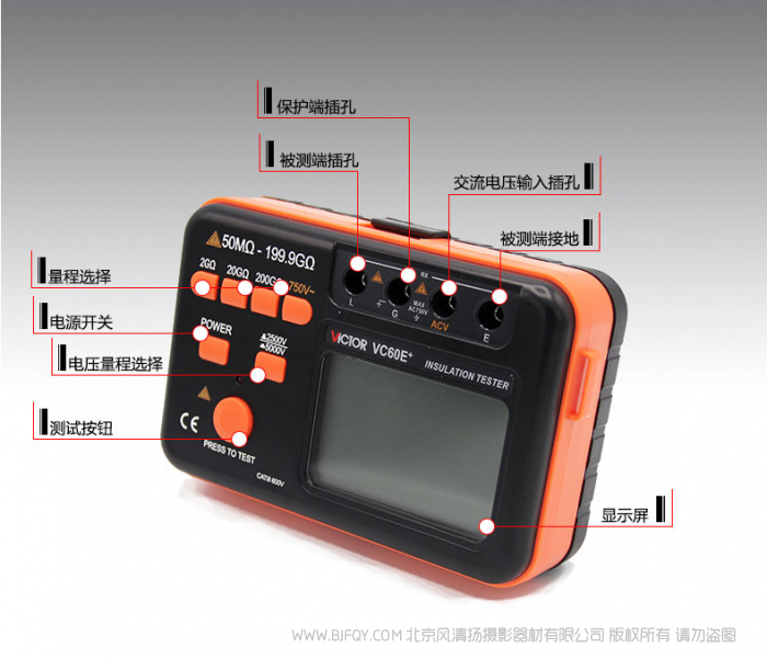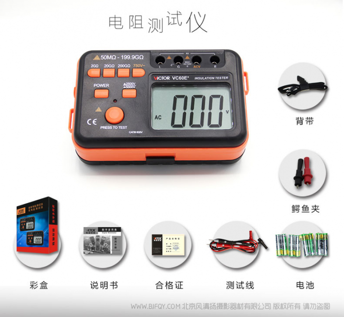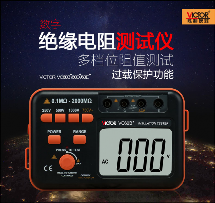 胜利仪器 VC60B+ 绝缘电阻测试仪 手动量程 多档位阻值测试 过载保护功能