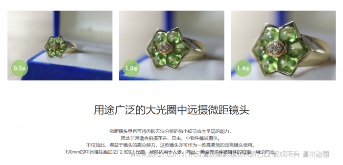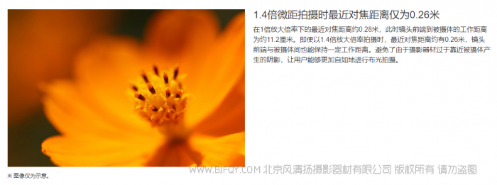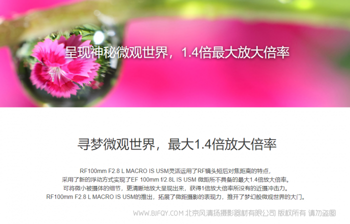 得益于RF卡口大口径与短后对焦距离的优势,RF百微镜头实现了1.4倍较大放大倍率。