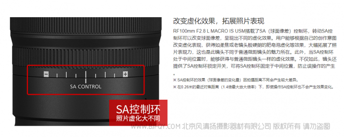 镜头新增加了SA(球面像差)控制环,用户可通过调整控制环获得不同的虚化效果。