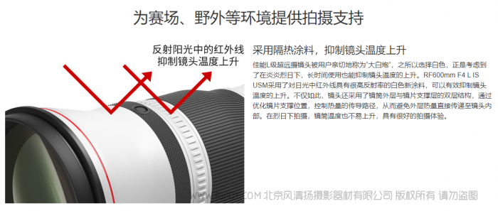 采用了隔热涂料的镜筒,在烈日下使用也可有效减少镜头温度上升。