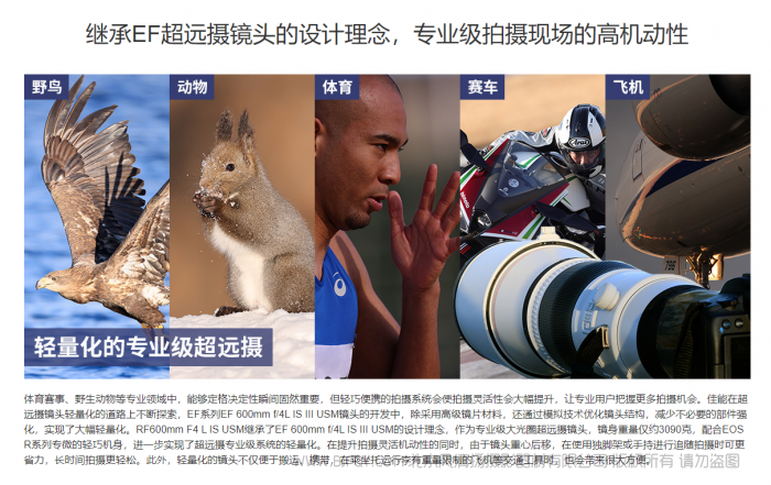 在EOS R系统下实现了轻量化与高画质兼备,为体育赛事、野生动物等专业级现场拍摄提供了强有力的支持。
