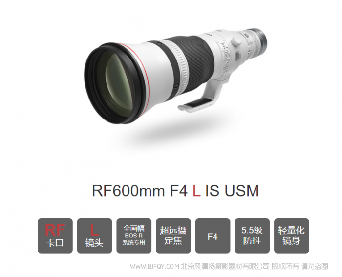 佳能 Canon RF600mm F4 L IS USM 轻量化 高画质 600mm专业级超远射定焦镜头