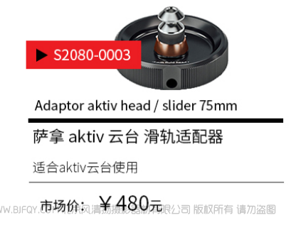 Sachtler®(萨科勒) S2080-0003 aktiv 云台 滑轨适配器 Adaptor aktiv head /slider 75mm