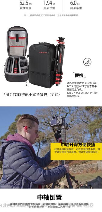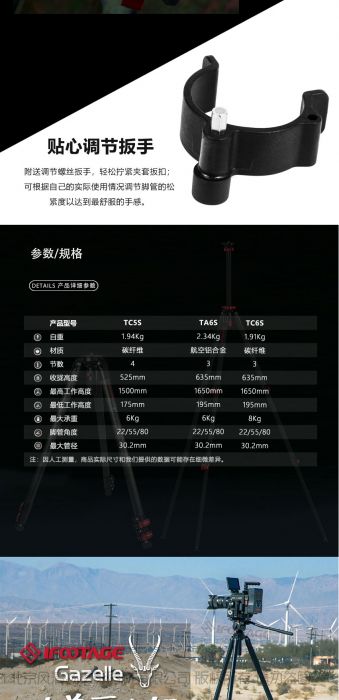 印迹(iFootage)羚羊三脚架TC5TC6TA6 碳纤维旅行直播中轴可倒置便携摄影 TC6S+K5云台