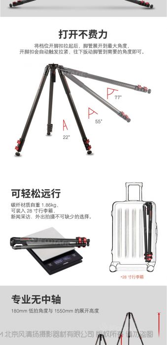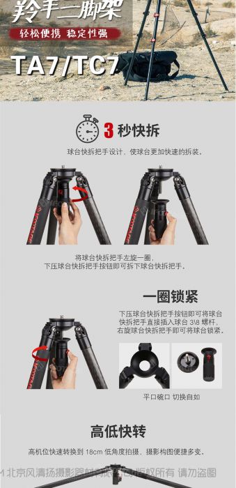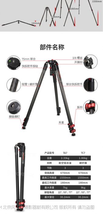 印迹(IFOOTAGE)TC7+K5云台 三脚架/羚羊TC7(无中置) 碳纤维便携专业摄影摄像单反5D 黑色
