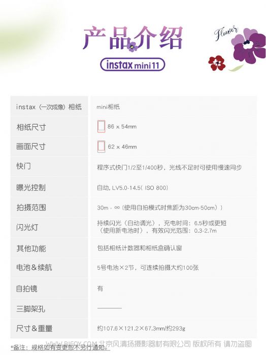 【停产】拍立得 富士 instax mini11 花雨 限定版 授权 迷你11 一次成像相机 立拍得