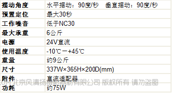 ◆高性能多功能摄像机云台系统◆摆动速度:较大90度/秒(可变速度)◆工作噪音:低于NC30(在30度/秒时)◆可安装提词器◆较大承重:6公斤