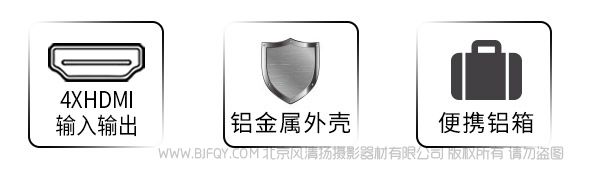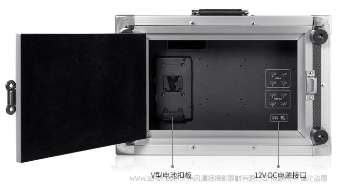 .便携航空铝箱(提手方便器材搬运);便携拆解(前后盖拆解便于画面监看和信号连接)。