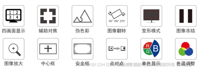 SEETEC ATEM156-CO根据前期拍摄和后期制作的实际需要,设定了专业的监看功能,帮您提高拍摄的工作效率。配备四个4K HDMI输入,支持四画面、双画面、单画面监视功能,让您在任何位置都可以进行多机位监看!包含各种聚焦检查功能,例如峰值对焦、伪色彩、点对点,可帮助获得清晰的图像。包含取景功能,例如中心标记、安全标记、网格标记,用来防止在直播过程中切割屏幕,在直播过程中为其他功能留出正确的空间。还包含了图像放大、单色显示、图像冻结、色温调整等功能。