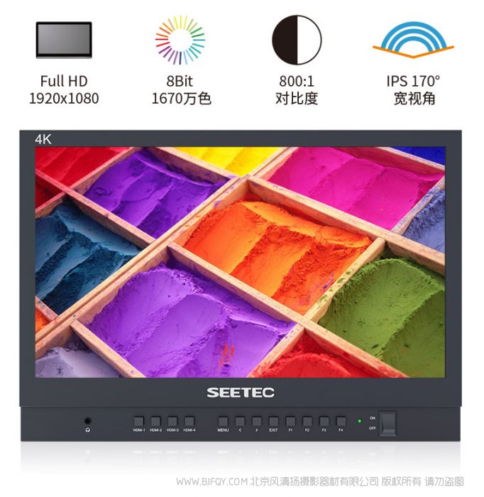 SEETEC监视器支持符合ITU标准与HD视频Rec.709规范一致的色彩空间,先进的图像处理技术,让图像清晰呈现,使色彩过度极其自然,保证准确的色彩还原,重现拍摄实物的自然本色,使用户能够准确地评估各种输入视频信号质量。
