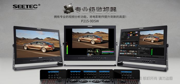 P215-9DSW是一款应用广泛的高品质监视器,从广电机构到移动式现场制作,甚至是电影外景拍摄制作都能胜任!配备了3G-SDIx2,HDMI,Video和分量YPbPr接口,多种输入方式满足您各种专业显示方案的需求。
