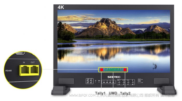 SEETEC FS215-S4K监视器配有3色TALLY指示灯(红、绿、黄),不仅可以提示摄像师已进入录制状态,同时,更能体会到电视拍摄准专业技术带给您创作中的方便性(Tally灯选配)。