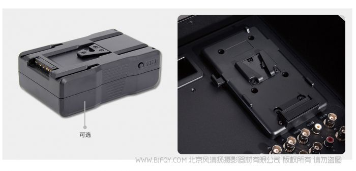 外景拍摄常常使用直流电源为设备供电。4K215-9HSD-192-CO配备索尼V型电池扣板,可以使用电压为14.4V的摄像机锂离子电池为设备供电。一组130Wh的摄像机电池,可提供超过6个小时的连续供电时间。大大节省了备用电池的携带数量。也可选配松下安东电池扣板。