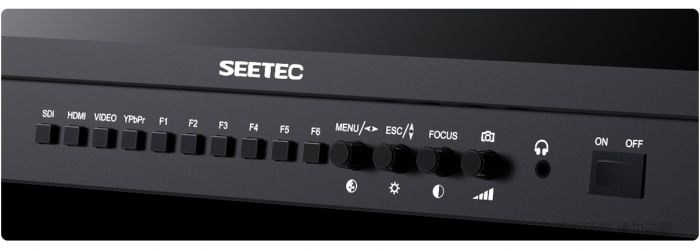 SEETEC广播级监视器符合大多数专业的应用的要求,可以在前面板上设置F1到F6快捷按键,比如:辅助对焦,点对点,中心标记/框形标记,单色显示,图像翻转等功能。