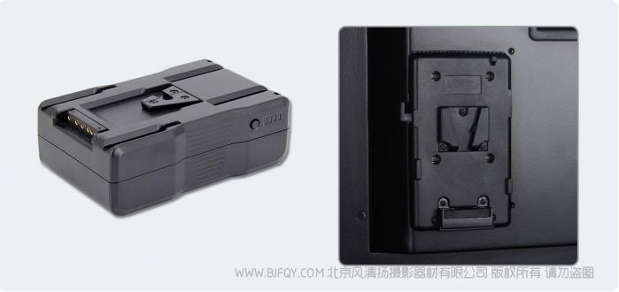 外景拍摄常常使用直流电源为设备供电。P215-9HSD-CO配备索尼V型电池扣板,可以使用电压为14.4v的摄像机锂离子电池为设备供电。一组130Wh的摄像机电池,可提供超过6个小时的连续供电时间。大大节省了备用电池的携带数量。也可选配松下安东电池扣板。