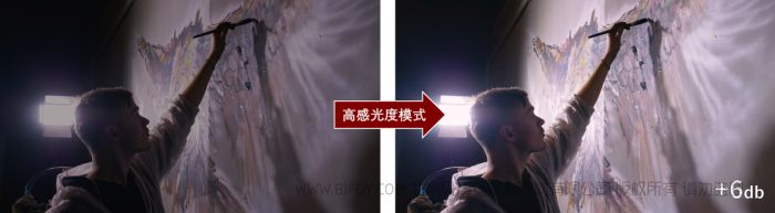 XF605在XF系列机型中首次搭载高感光度模式,该功能可以让用户使用比常规感光度更高一级的感光度进行拍摄。2000lux感光度相当于F12光圈(3840×2160 / 59.94p, 高感光度模式下)。