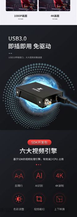 广泛应用于各种便携式图像采集、便携式录播、游戏、网络直播、视频会议、医疗影像等高清信号的采集