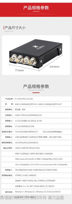 天创恒达 TC-UB570G Pro 12G-SDI 1路SDI 4K 高清USB采集卡