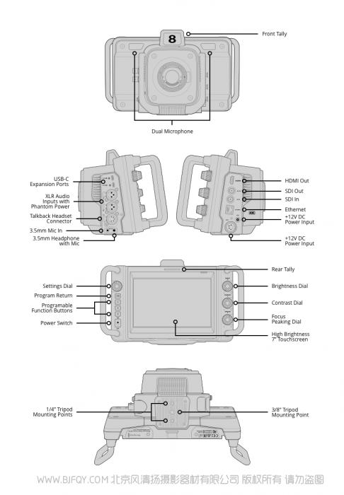 2 x USB-C 3.1 Gen 1扩展端口,可外接存储介质记录Blackmagic RAW格式。