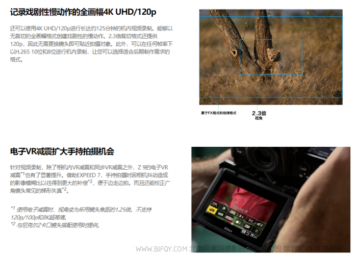 • 全画幅4K UHD/120p,无裁切,可呈现戏剧性的慢动作。