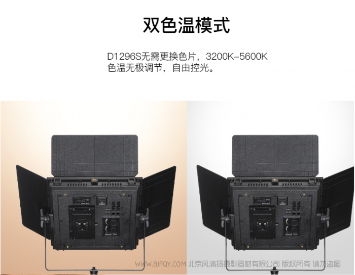 4、色温:3200K-5600K(±150K)无级可调,长时间输出稳定、平滑、无频闪