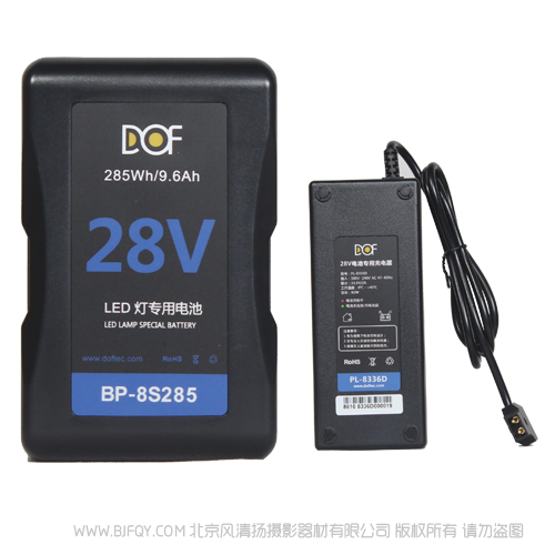 富莱仕•DOF 锂电池BP-8S285/V口/28V9.6AH/285WH 28V锂电池专用充电器PL-8336D/33.6V2A 电池充电器套装
