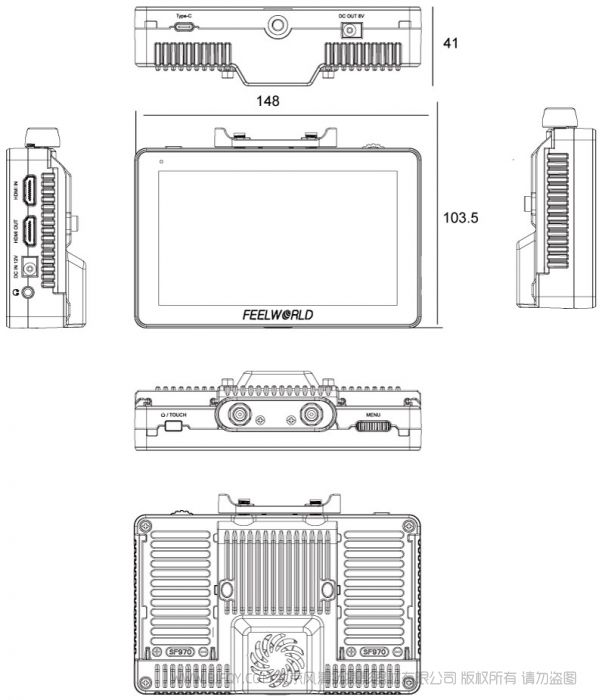 *F970 外挂供电设计可用于外部设备安装及供电,易于安装和拆卸,简化摄影设备