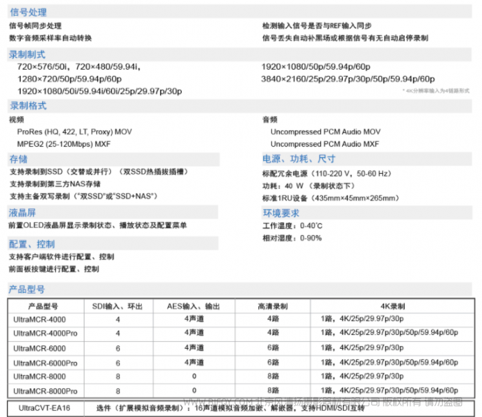Redlink 瑞得霖科 MCR 多通道录像机 UltraMCR 8通道HD或1路4K/60p节目