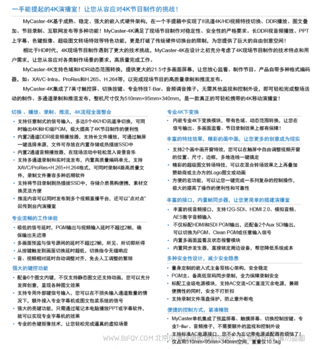 | MyCaster-4K 技术规格 | ||
