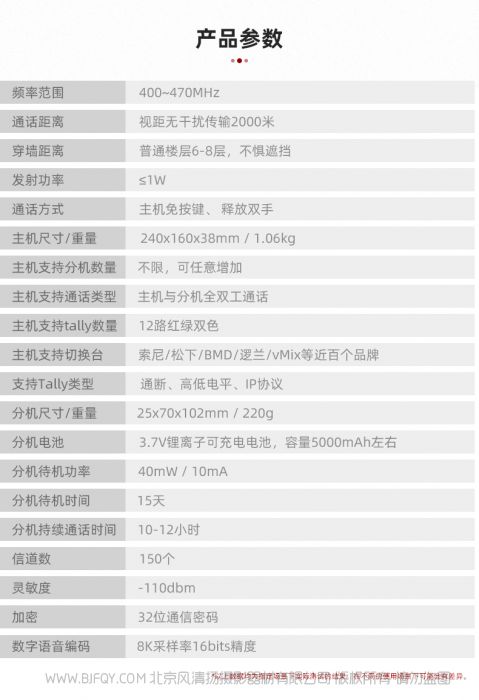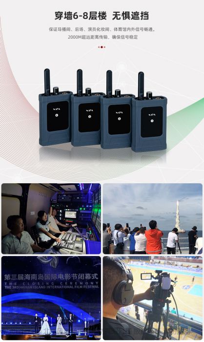 1、频率使用1GHz以下合规低频段,视距传输2000米保证分机在演播区、后台、不同楼层(可穿墙6-8层楼)、或者场外转播车等各种场合,均能够与主机进行流畅通话。