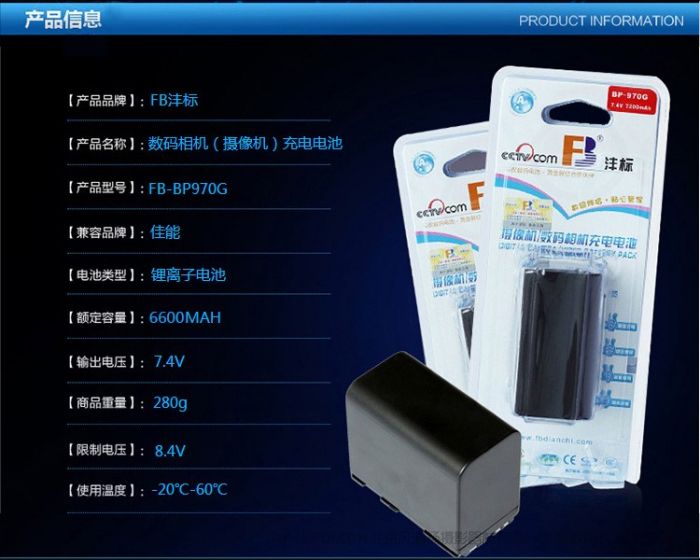 沣标(FB)BP970G 电池 适用佳能摄像机XF315/XF305/XF300/C300/C100/C500 沣标BP970电池