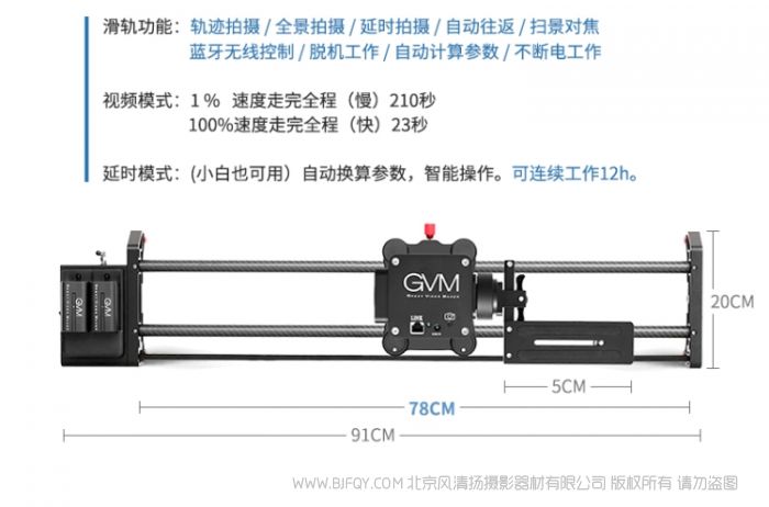 GVM WS-2D-80cm 专业无刷 双轴碳纤维电动相机滑块 (32") 双轴电控一体静音滑轨80cm