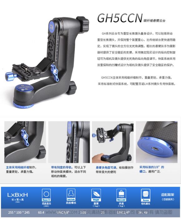 云台类型:悬臂云台 颜色分类:黑色 产品材质:碳纤