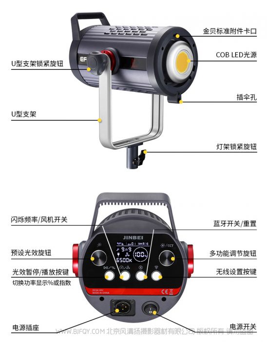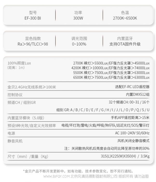 | 金贝2.4GHz无线系统≥100米 | 选配EF-RC LED遥控器 |