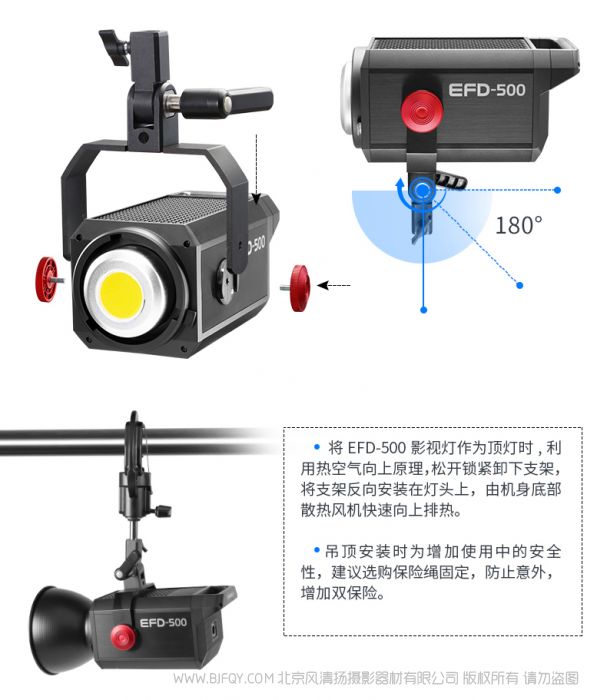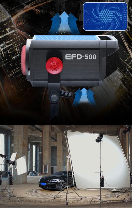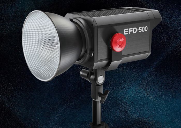 EFD-500 采用金贝专业影像COB LED技术,裸灯状态下1米距离照度依然达到20000Lux,使用EF反光罩,在1米距离光照度达到63500Lux。