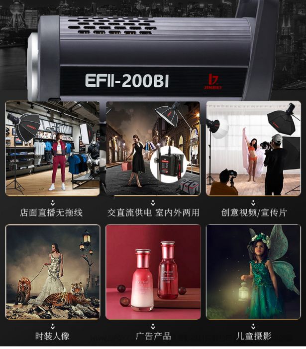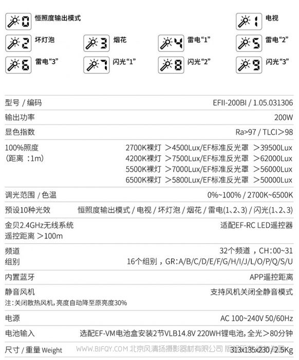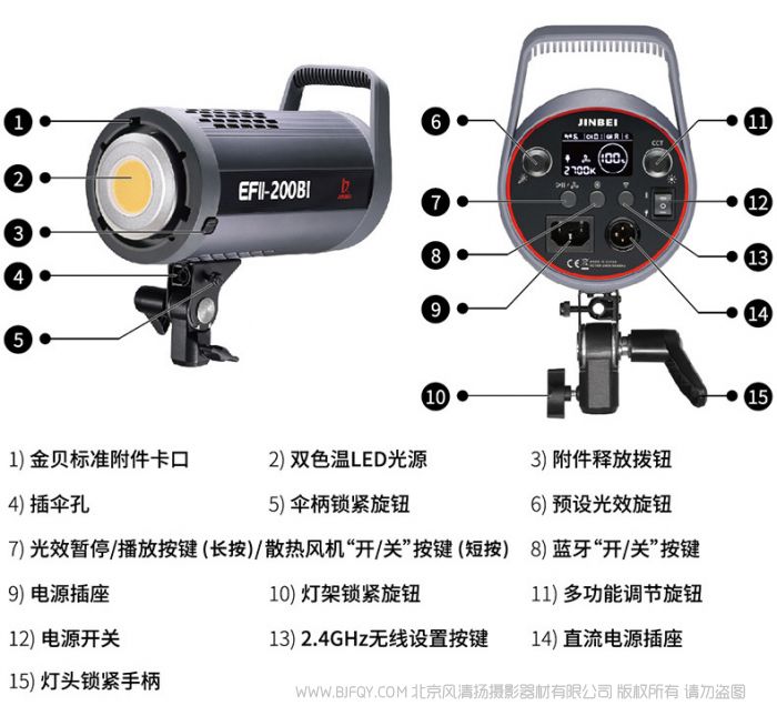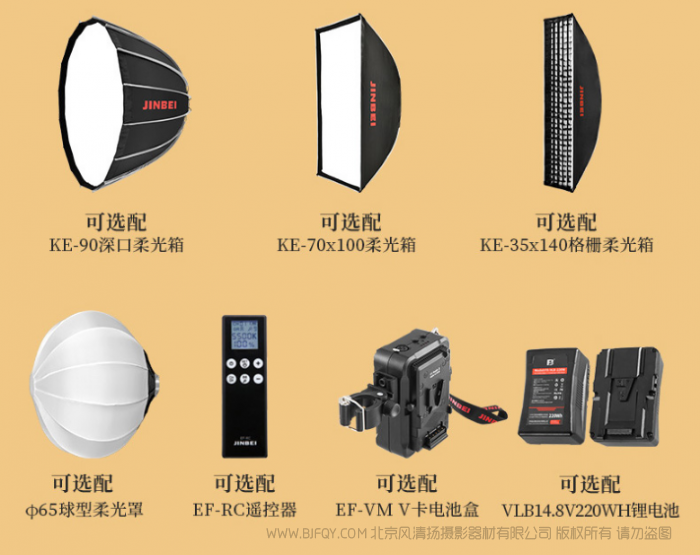 | 金贝2.4GHz无线系统≥100米 | 选配EF-RC LED遥控器 |