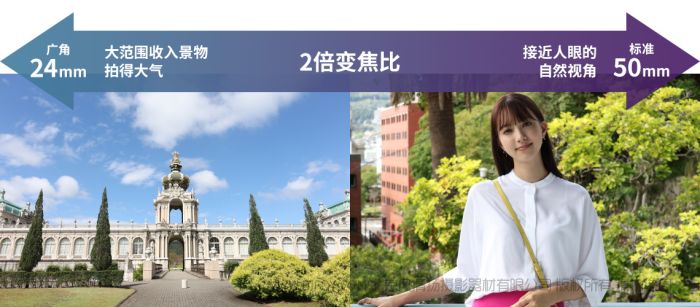 标准变焦镜头广角端的24mm焦距可以大范围收入景物,将建筑或风景拍得大气,同时在狭小室内也能大范围收入背景,非常方便;35mm中间焦段是街拍的经典焦段;50mm端则被称为是较接近人眼视觉效果的标准焦距,适合拍摄人像。所以此镜头既可广泛适用于家人、宠物的日常拍摄记录,又可适用于旅行、街拍。