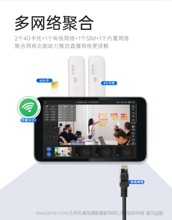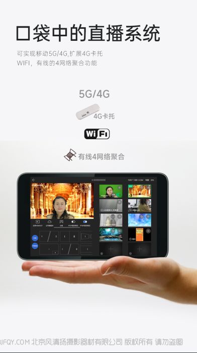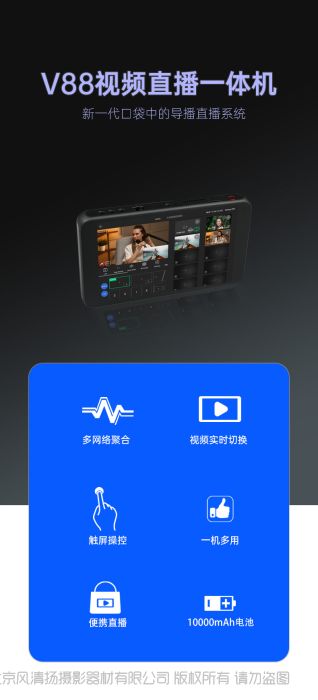 多网络聚合 视频实时切换 触屏操控 一机多用 便携直播 10000mAh电池