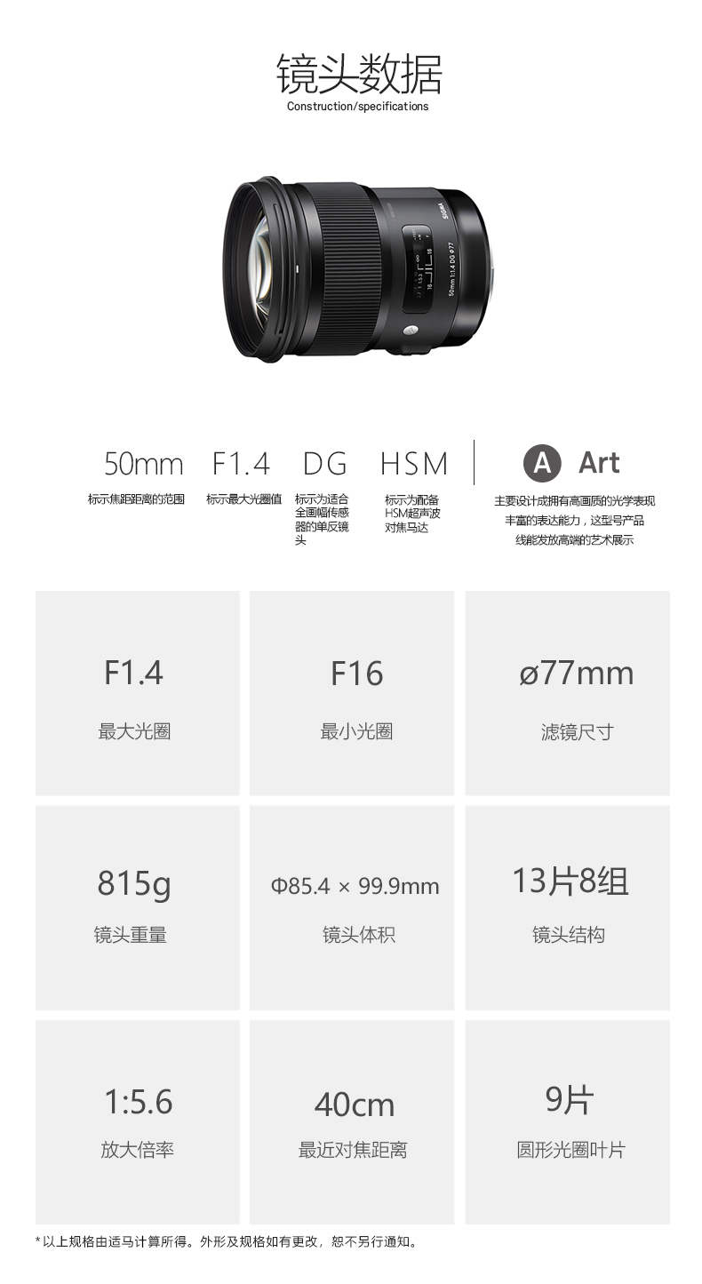 Sigma适马 Art 50mm F1.4 DG HSM 全幅大光圈人像定焦镜头索尼E卡口