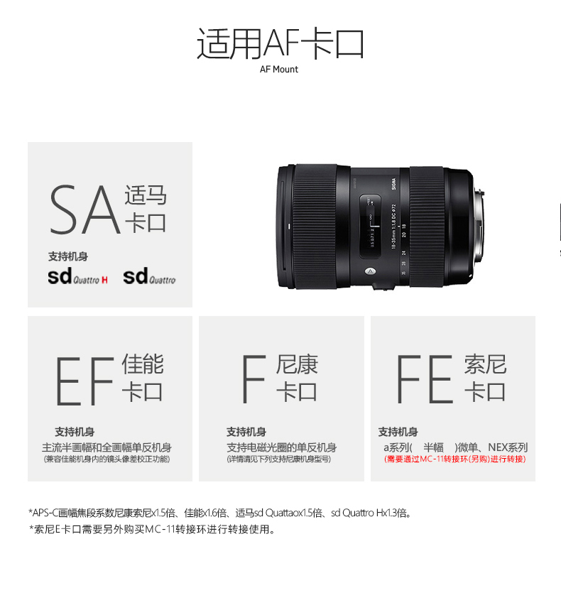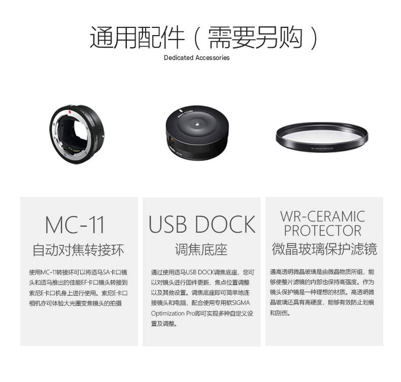 • *本产品用于适马以外品牌相机,可能会产生部分不兼容的现象详情请见适马官方网站或垂询适马官方热线4008528080